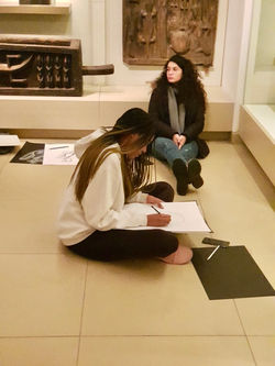 בהמשך, התקיימה סדנת רישום מונחית בגלריית פסלים ומסיכות האפריקאיות.